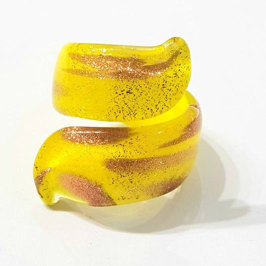 Anello a spirale in vetro di Murano con foglia oro e avventurina.