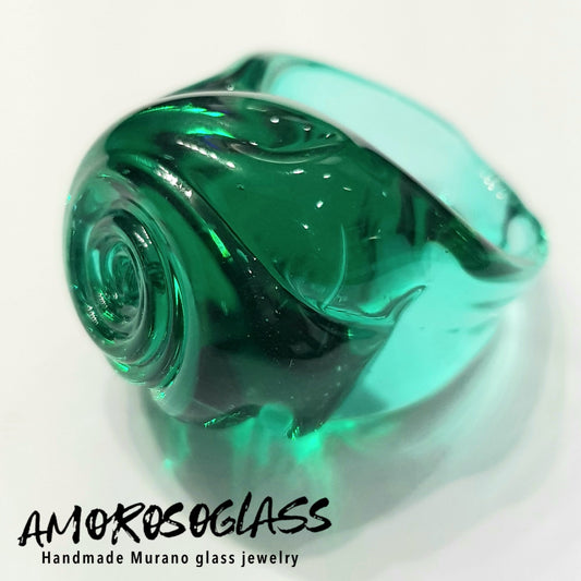 Anello BOCCIOLO in vetro di Murano colore verde mare.