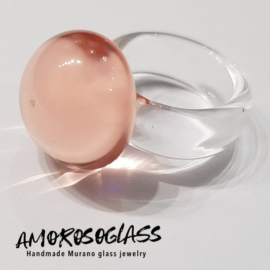 Anello BOCCIOLO in vetro di Murano colore rosato trasparente.
