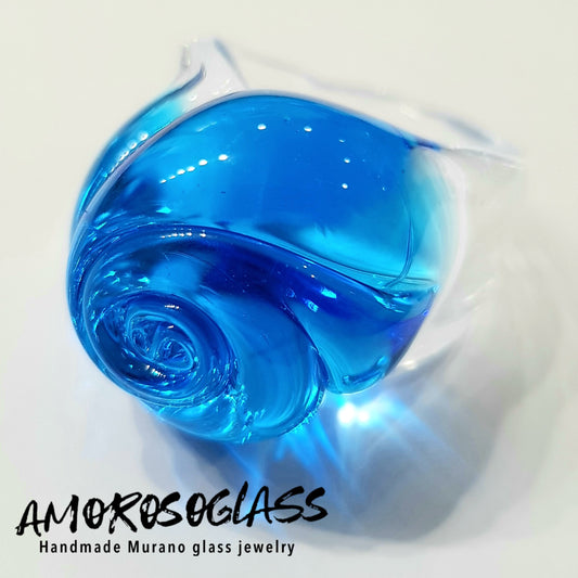 Anello BOCCIOLO in vetro di Murano colore acquamare con base anello in cristallo trasparente.