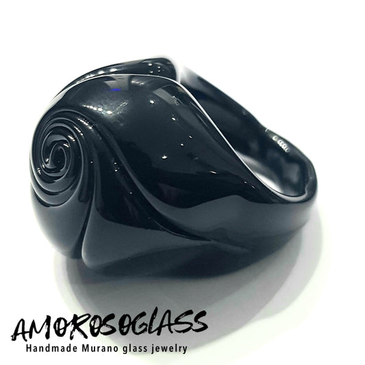 Anello BOCCIOLO in vetro di Murano colore nero.