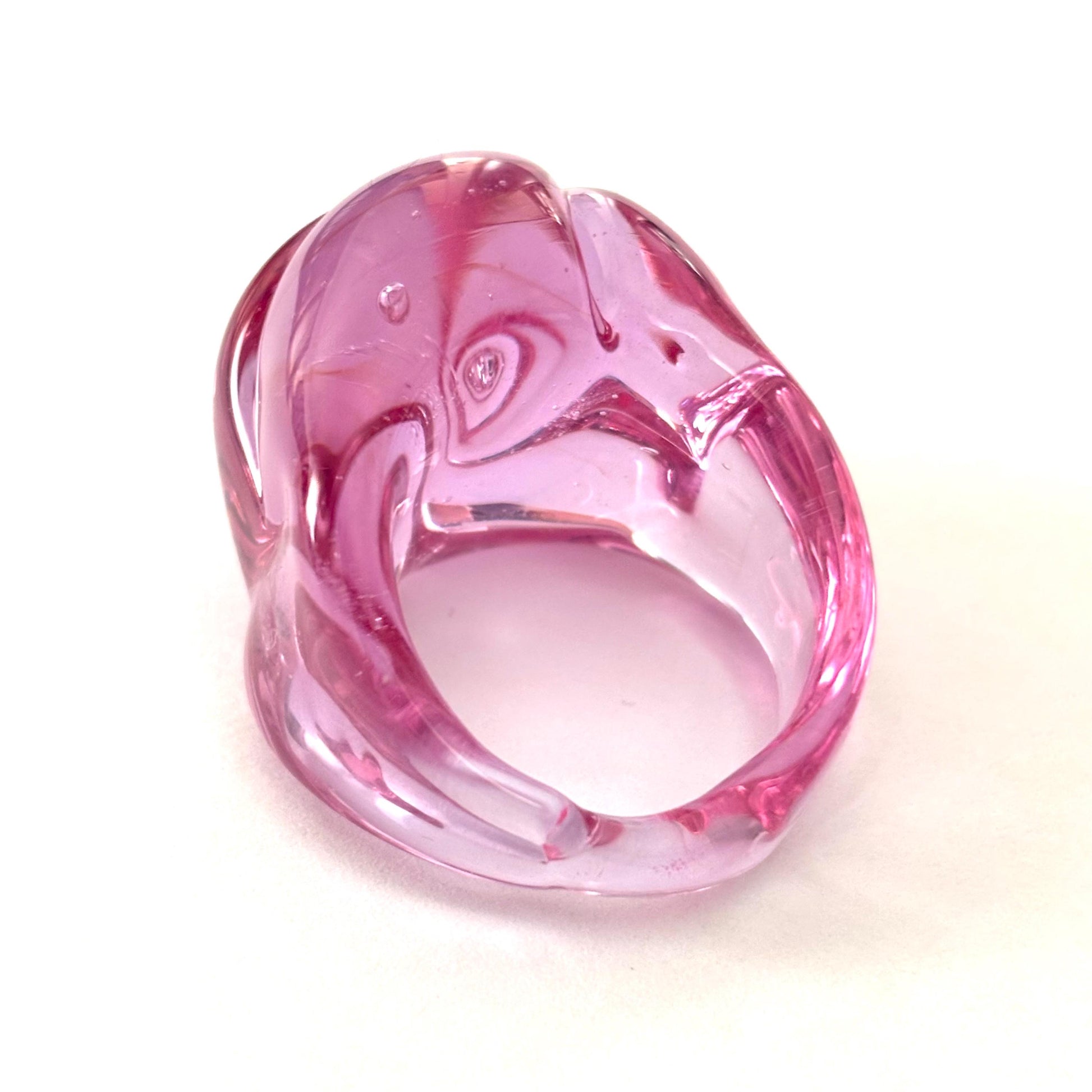 Anello BOCCIOLO in vetro di Murano colore rosato trasparente.
