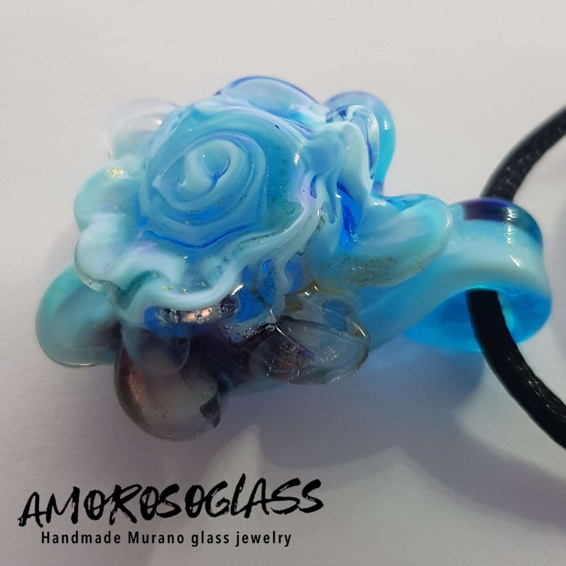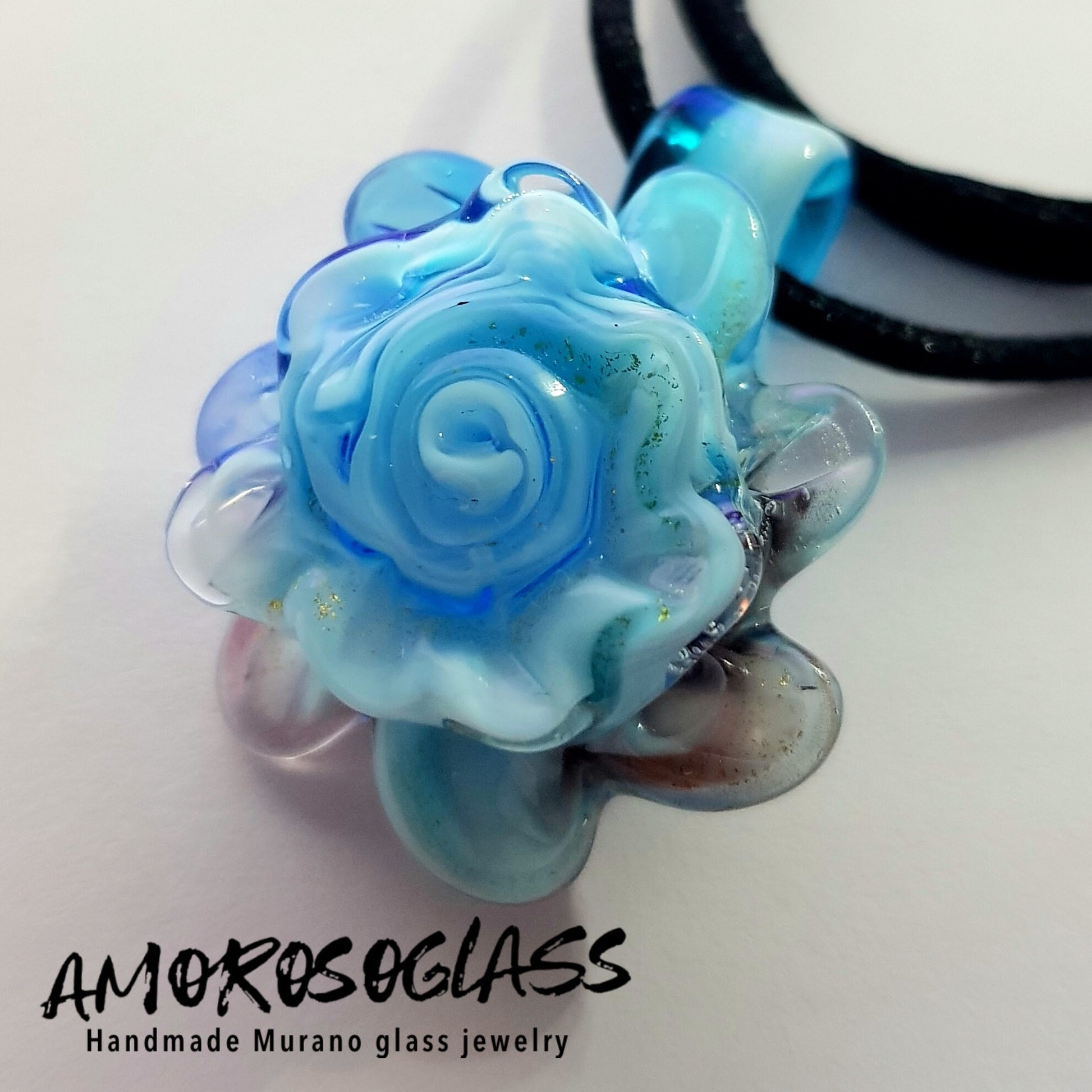 DALIA - colore celeste/blu in vetro di Murano lavorato a lume.