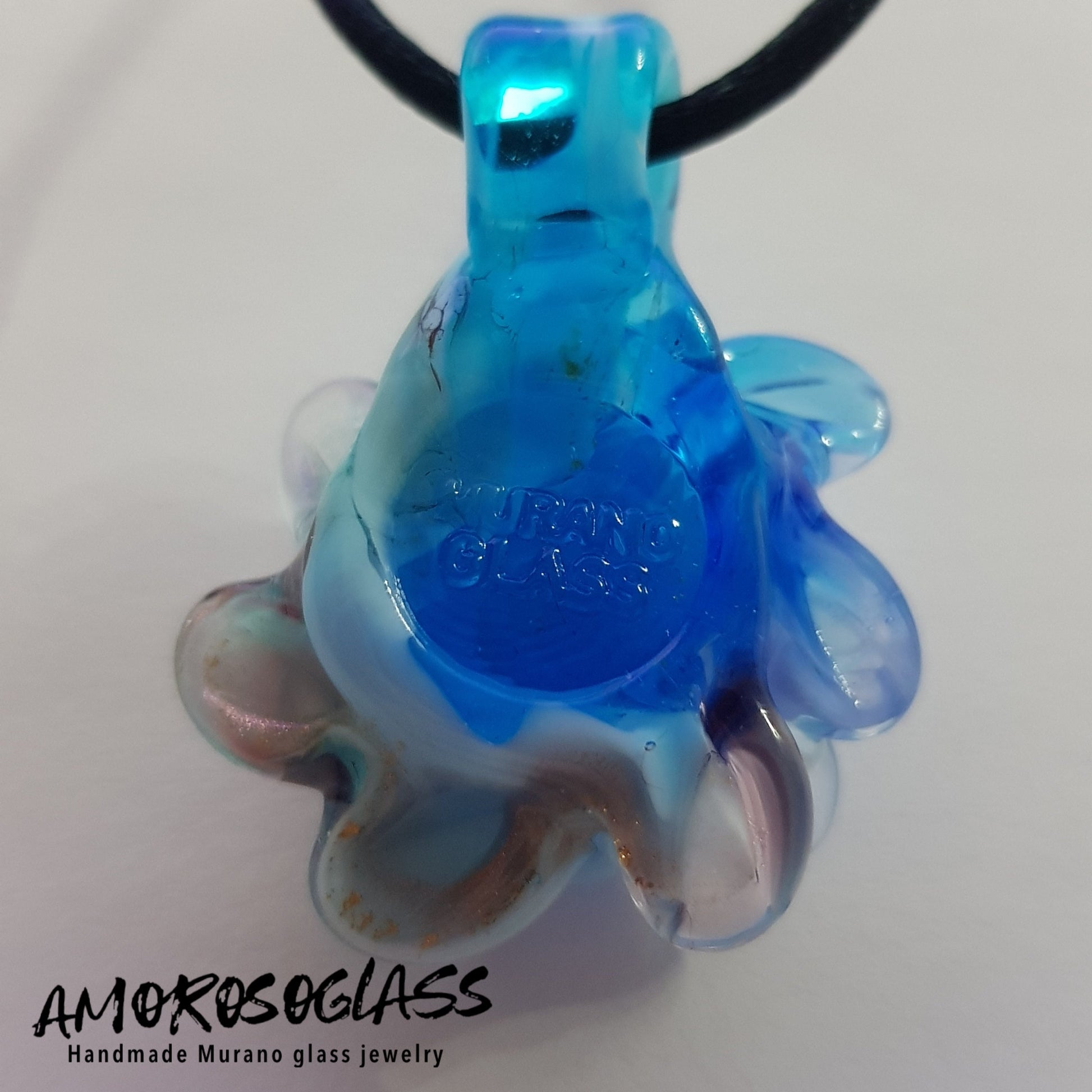 Il pendente DALIA è un capolavoro di artigianato veneziano. Realizzato in vetro di Murano lavorato a lume, questo pendente presenta un colore celeste/blu incantevole. Ogni pezzo è unico, con dettagli intricati e una lucentezza mozzafiato.